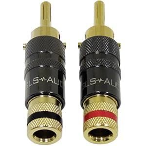 GLS Audio Locking Series "Generation 4" Gold Connector Banana Plugs Banana Clips - 20 Pack (10 Reds & 10 Blacks)